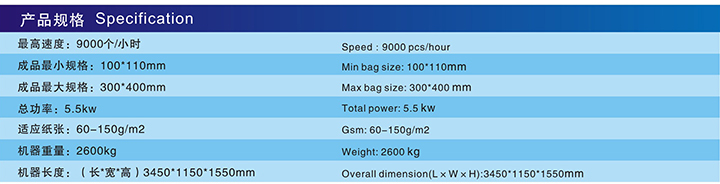 WF200A型自動(dòng)信封紙袋機(jī)作為系列產(chǎn)品的重要規(guī)格之一,主要用于加工大、中型信封,在完成信封的同時(shí),在信封的封口貼上離型紙。WF200A型自動(dòng)信封紙袋機(jī)具有生產(chǎn)效率高,性能穩(wěn)定,調(diào)整操作快捷方便,結(jié)構(gòu)緊湊,占地面積小等優(yōu)點(diǎn)。本機(jī)型的設(shè)計(jì)還特別考慮了厚紙加工的需要。氣吸式紙堆底部給紙機(jī)構(gòu)分紙可靠,并可不停機(jī)續(xù)紙。配有吸氣滾筒的柵欄定位折疊機(jī)構(gòu)高速穩(wěn)定,折疊準(zhǔn)確??刹煌C(jī)調(diào)整信封(紙袋)的寬度,輪轉(zhuǎn)施膠機(jī)構(gòu)可保證膠量均勻,清洗方便,配有成品計(jì)數(shù)分組機(jī)構(gòu)。